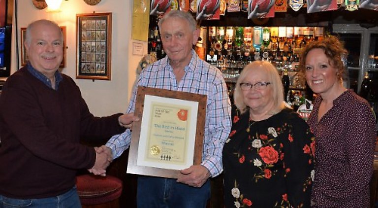 Graham and Celia Steward at the Bird in Hand in Henley have clocked up 25 years of owning/running the pub: the exact date was Saturday 3rd November. Marisa Francini, on behalf of the South Oxfordshire branch, presented them with a Special Award certificate to mark the occasion, and made a small speech, emphasising the following points:- It is a fantastic community pub with a huge number of regulars of all ages.