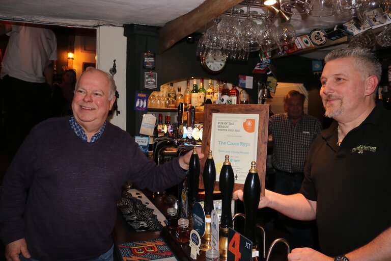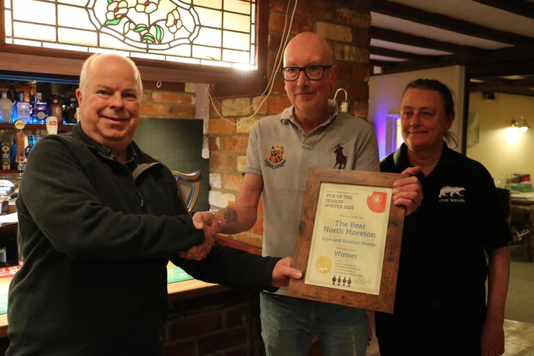Our Winter Pub of the Season 2024 Award has been presented to Di Humphrey at The Crown Inn, South Moreton (pictured above with Branch Chairman Graham Hards).